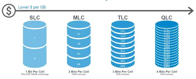 最开始的固态硬盘厂商,也是从SLC开始发展,高成本高售价,导致了消费市场叫好不叫座的现象,之后的降级产品MLC,TLC和QLC继续相继问世,最终也让昔日堂前燕,飞入了寻常百姓家。这么看来,用产品寿命换售价,似乎只是给消费者带来了更多的选择,至少让很多人感受到了低价固态带来的科技成果。