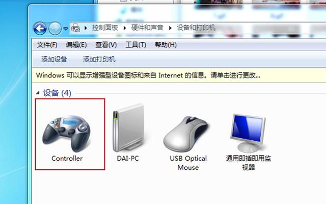用USB线连接电脑和手柄后,静待几分钟,自动安装驱动程序,完成后,在控制面板中,会识别新的设备。