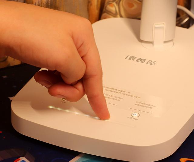 底座上带有三个轻触式按钮,以及一个滑动设计的光线亮度按钮。三个触控按钮从左到右依次是开关按钮,学习专用光按钮,以及休息提醒按钮。开关按钮用于台灯的开启与关闭,学习专用光按钮可以为您带来最适宜阅读的600lx亮度,最后一个休息提醒按钮开启后会每四十五分钟实现滴滴声提醒,孩子可以简单休息,放松眼睛,缓解疲劳。这款台灯开启与关闭时加入了缓亮和缓灭设计,不会出现突发高亮,给眼睛以适应器,不会带来过度眼部刺激,对于小朋友来说使用异常贴心。