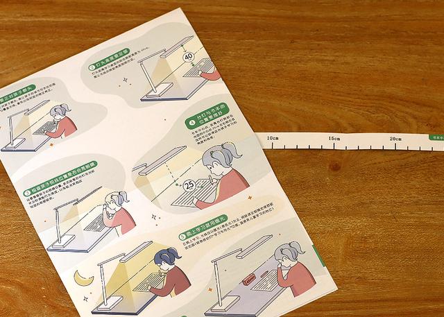 另外自然少不了传统的使用说明,质保卡等搭配,从说明上我们可以看到,在日常学习中建议台灯与书本之间的间距在40厘米左右为最佳,并且晚上学习时使用暖光为佳。