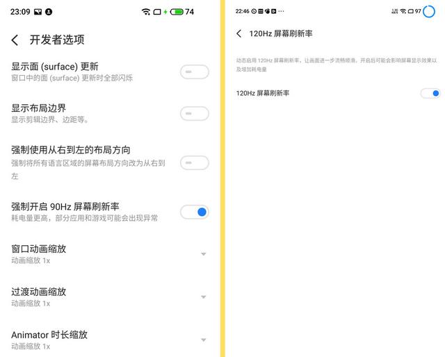 目前新版本的固件选项里,可以找到120Hz刷新率开启的选项,这款手机可以运行在60Hz,90Hz以及120Hz三种刷新率之下,操控来看还是颇为顺滑流畅的。除此之外,还在拍摄与视频等选项中增加了效果更强的全场景视频防抖,以及亮屏快充等一系列的设计。