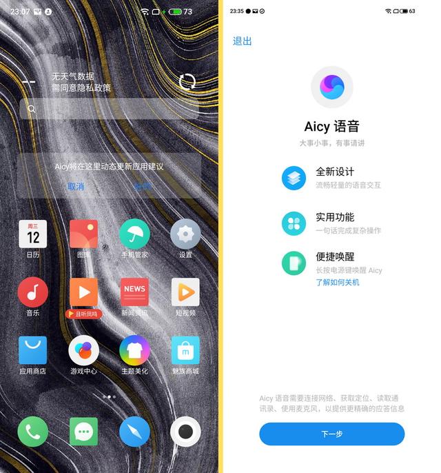 多年后重回Flyme系统怀抱无疑还是颇有陌生感,从上一款OPPO手机用户转变为魅族手机用户,无疑对这个动画和图标布局还是颇为不习惯,每个图标的风格相对独立,有圆有方的这种风格没有全都统一起来。不过用了一段时间后也颇为喜欢,越看越顺眼这事肯定是很容易发生的现象。手机负一屏带有这个AIcy交互设计,各类快捷启动,信息查询,新闻推送也是一样不缺。Aicy 语音助手体验来看,声音颇有亲切感。