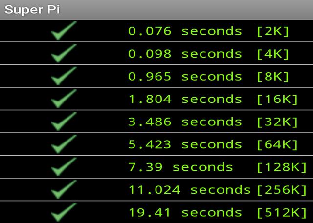 简单来上一张计算Pi所需的时间,这里的测试时间越短越好。红米K30 5G采用的高通骁龙765在最后一栏512K计算时间为19.41秒,比较过采用同款芯片价位更贵的某手机,时间差距极小。对比高通骁龙865芯片的某手机,耗时12.46秒完成计算,另一款高通骁龙865芯片的某手机耗时13.61秒左右。