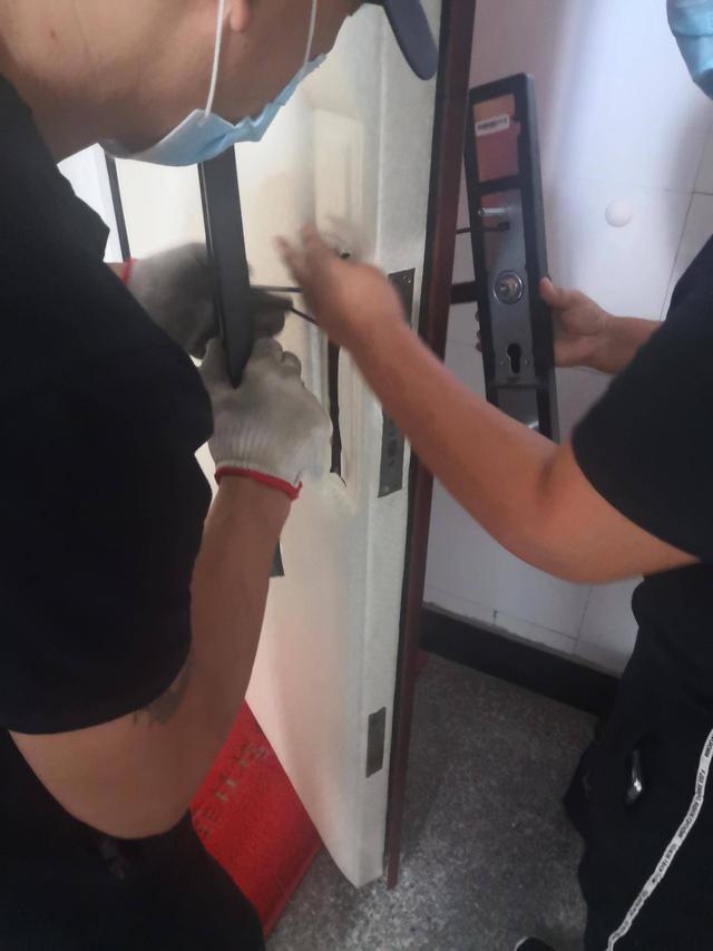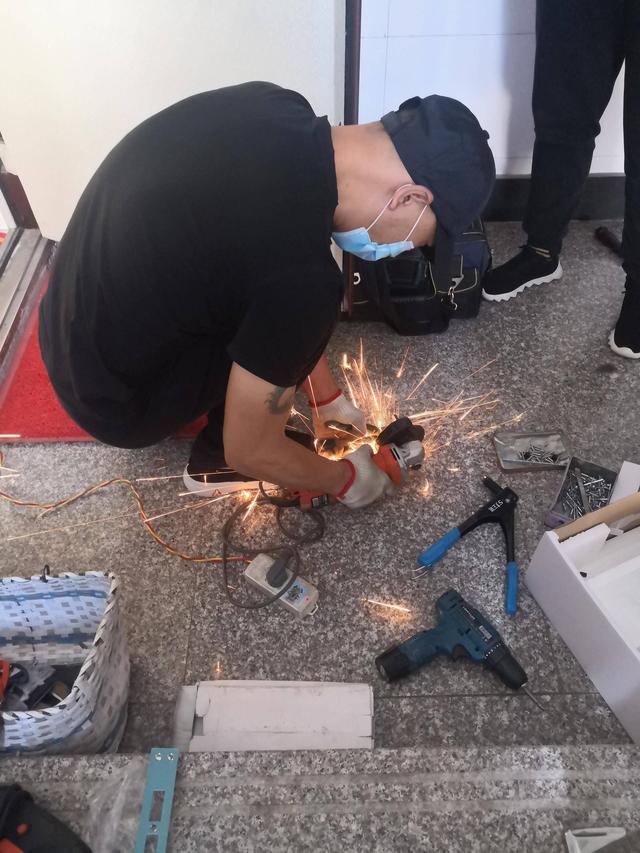 首先师傅先拆下之前使用的指纹锁,这步很重要,要留好所有的螺丝配件什么的,方便下次安装。