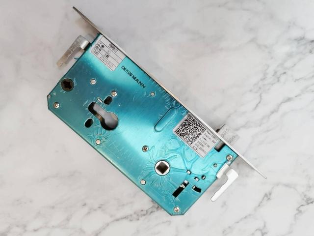 德施曼小嘀 Q3H智能指纹锁的锁芯是非常长的,要经过切割才可以。也就是说可以使用在目前最厚的防盗门上,这个设计真的非常不错,只不过我的门锁只能切割开了。