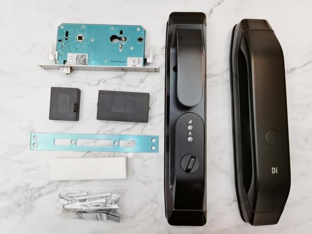 全家福来了:内外门锁、C级锁芯、两块电池、门边条外加各种小零件。