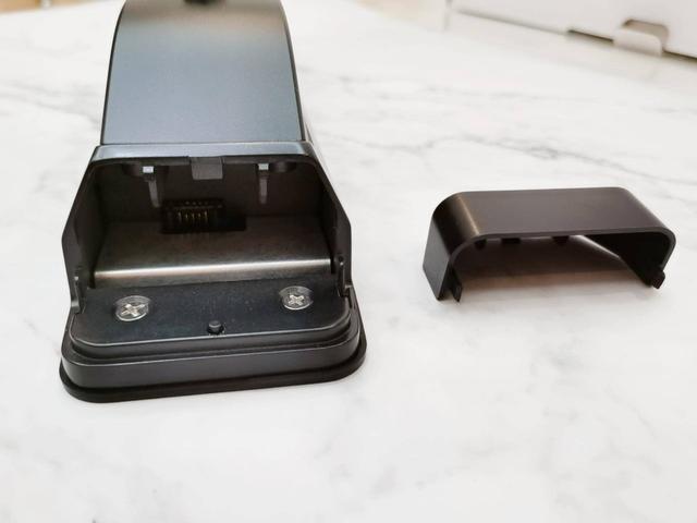 备用电池是从上方插入锁体的。更换、拆卸电池都比较简单和方便。
