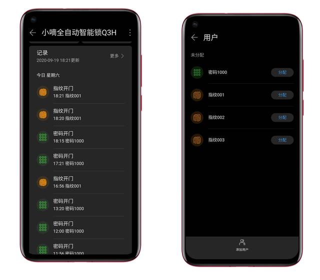 德施曼小嘀 Q3H智能指纹锁的指纹可以进行分配,将指纹分配给家庭成员就能在小嘀的使用记录页面看到几点几分何人开启了门锁了,这样的记录非常方便使用。