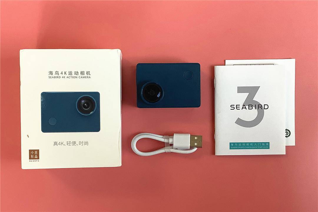 小米有品一如既往采用了简洁风包装,精致而小巧,打开快递之前,我甚至以为不是海鸟4K运动相机;包装内包含有海鸟相机、分体式电池、USB充电线、说明书,以下是全家福展示。