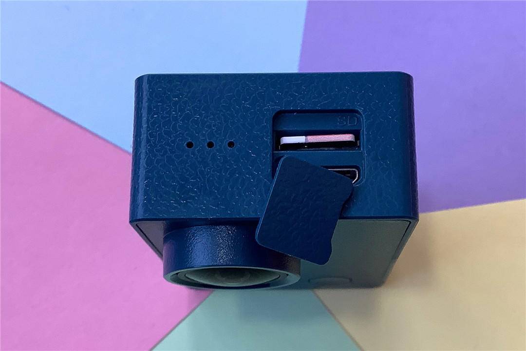左侧密封盖下隐藏有TF存储卡和MicroUSB充电口,之所以采用密封式设计,是为了满足水下的拍摄体验哦,想想就很酷吧;密封盖上端的三个小口是外放孔,方便确认录制效果。