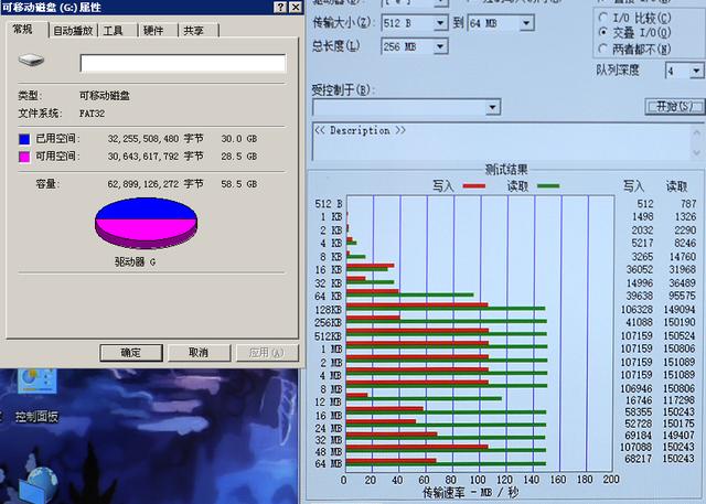 插入PC后可以看到,标称为64GB容量的U盘,可以被识别为58.5GB,为了兼顾手机的识别和PC的识别优先选择FAT32格式而不是NTFS格式。