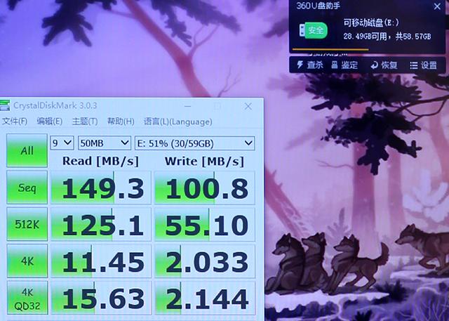 读写方面来说采用的是USB 3.0的高速接口,搭配我的笔记本来看可以实现读取149MB每秒写入100MB每秒的水平,向下兼容USB 2.0接口。同时可以轻松在安卓,PC等各类操作系统中实现即插即用。即使是车载播放器以及智能路由器等具有USB插口的设备上,也能轻松被识别与适配,可以说用途还是颇为广泛的。