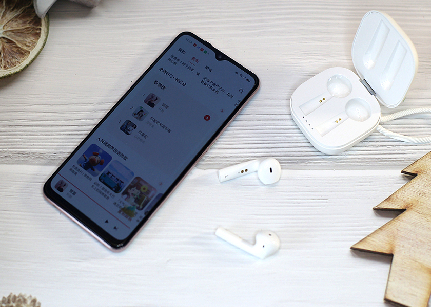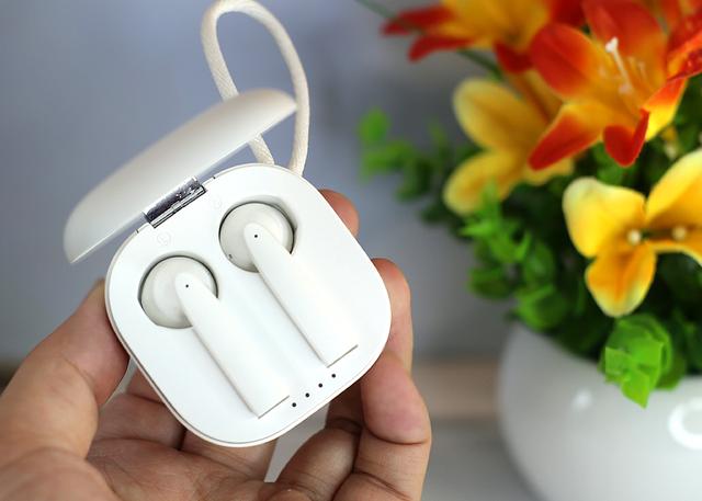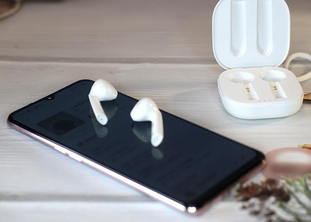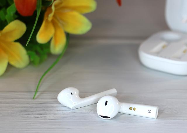 接下来看看耳机部分,采用了经典的半入耳式设计,但是设计上和AirPods大有不同。耳柄位置采用了一体化扁形设计,同时带有柳叶般飘逸的形状和弧度,整体搭配符合人体工学,能带来更好的支撑与佩戴效果。