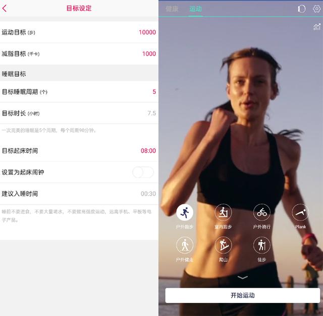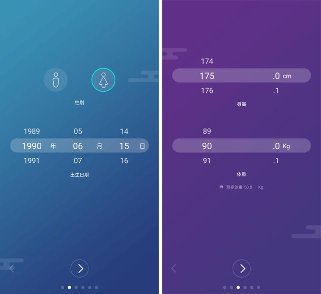在手机端,我们可以针对我们的性别,年纪,身高,体重,以及运动目标进行健康方面的详细设置。