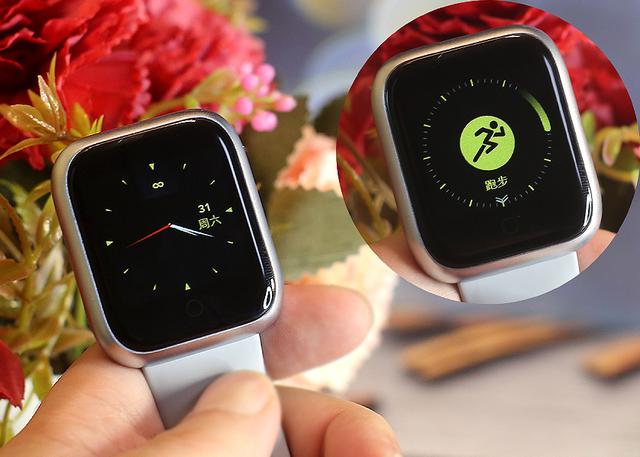 手表的表盘界面清晰漂亮,我们可以自由选择时间显示的方式,设置亮度,选择运动模式等。通过轻触屏幕下方的区域,可以进入到对应的功能菜单,长按则会进入下一级选项。