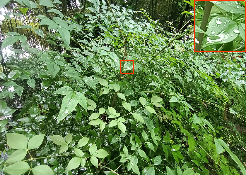 接下来我们就来看看实拍效果吧,4800万像素的主摄拍照清晰,在强大的AI功能下能够精准进行场景识别,并匹配最合适的拍照参数提升拍照美感。白天室外样张效果来说,即使放大到原像素,叶脉效果,露珠效果也能边缘清晰明快。