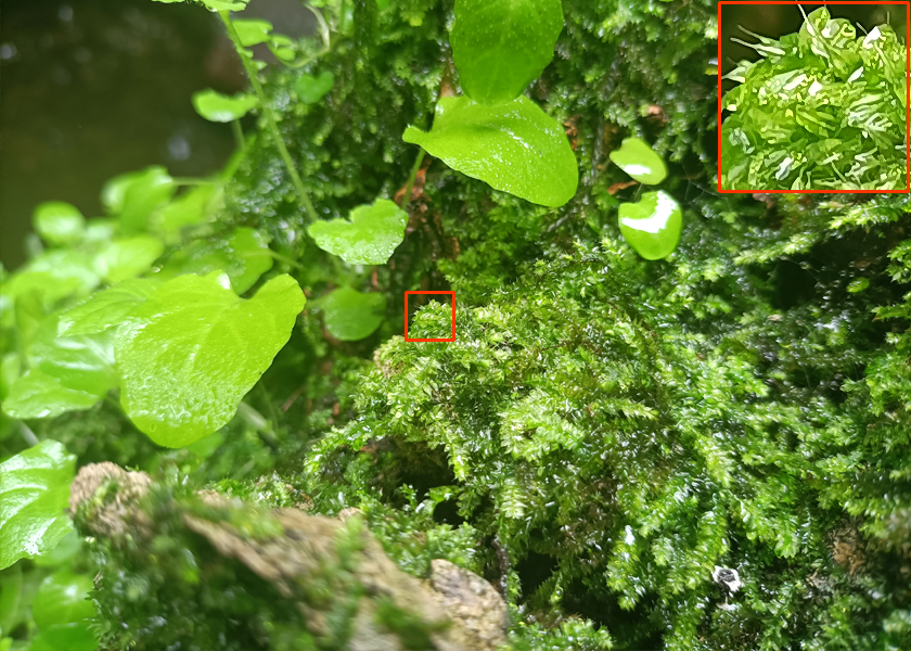 OPPO Reno4 SE 5G手机的微距摄像头只有200万的低像素搭配,支持4CM超近对焦距离,可以让你尽情探索微观世界。开启微距模式后拍照并不是通过这个微距摄像头进行直出画面,结合AI场景识别,主摄像头加持,以及炫彩模式和色彩控制还有曝光组合的各种加持,我们可以看到即使苔藓针尖大小的叶片也能经得起多级放大,图片细节饱满而丰富。背景虚化十分自然,没有明显的涂抹感。