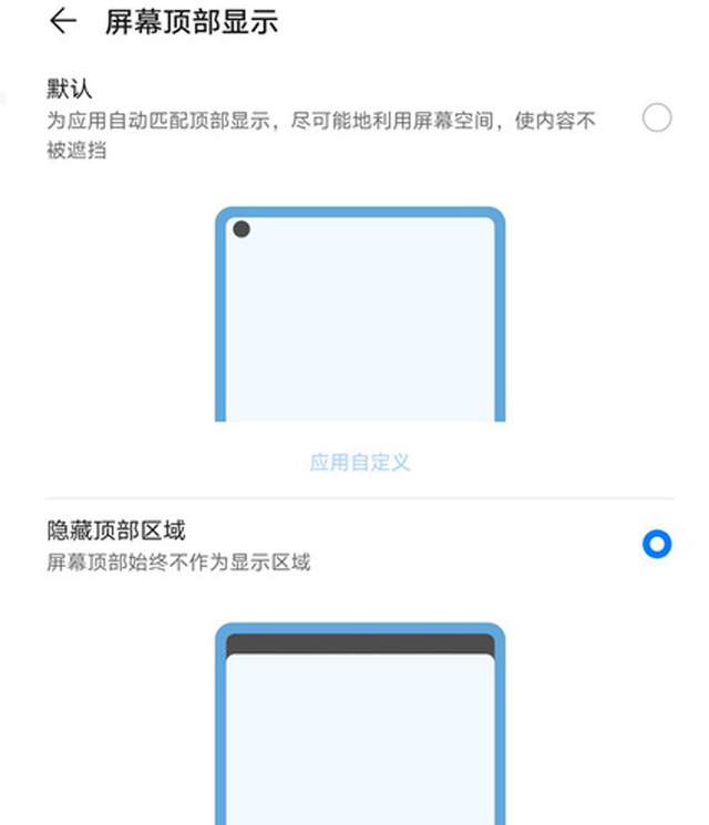 显示设置中因为华为nova7 SE 5G手机顶部位置的开孔设计,我们可以选择开启和隐藏两种模式搭配,我们可以选择开启和隐藏顶部区域两种模式。隐藏顶部区域后会让顶部形成一整条黑边,降低顶部双孔的存在感。