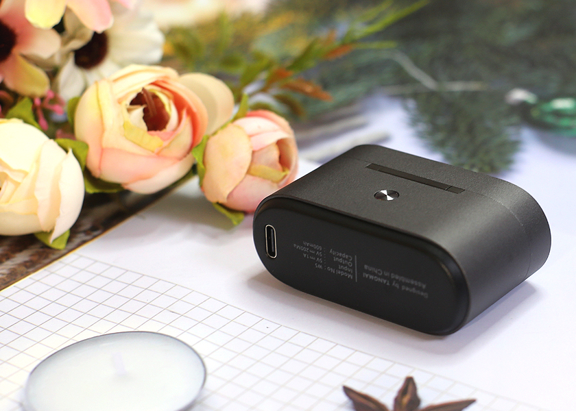 充电仓的底部带有产品性能,背面则配备了指示灯显示按键。正反可插的充电口位于底部,和我的手机通用充电线充电时间大约1.5小时,使用极为快捷方便。充电仓内置600mah电量,可以为一对耳机额外充电5--6次,累计可以超过48小时续航。轻松满足一周左右的使用需求。