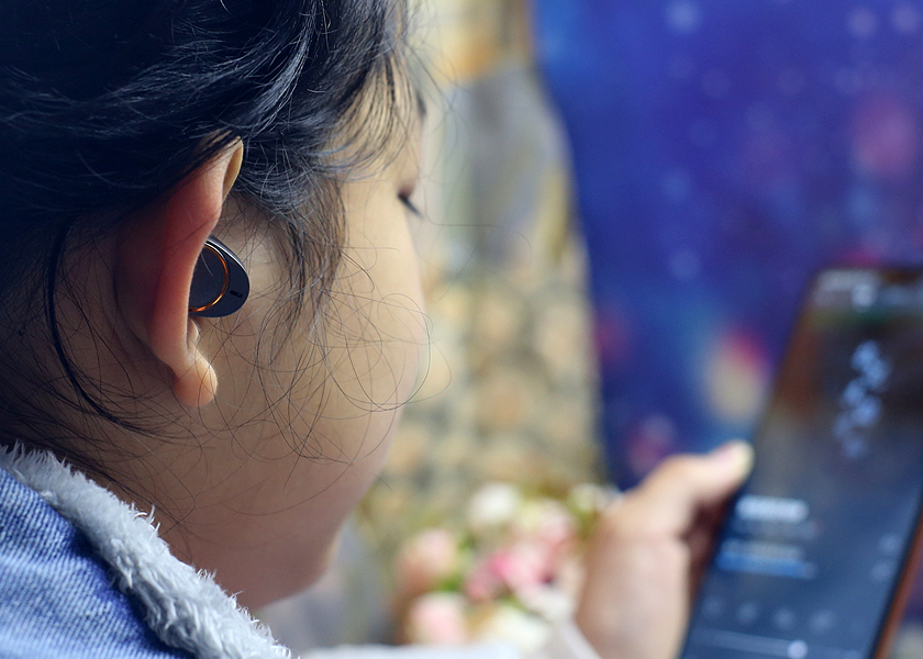 单只耳机仅仅4.1g,可以说是体积小巧重量轻巧,使用中不会有累赘感。