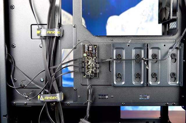 机箱自带风扇控制器,并且附送的5把风扇当中有4把已经安装,所以通过面板上的调速开关,可以调整风扇转数,使用起来很方便。