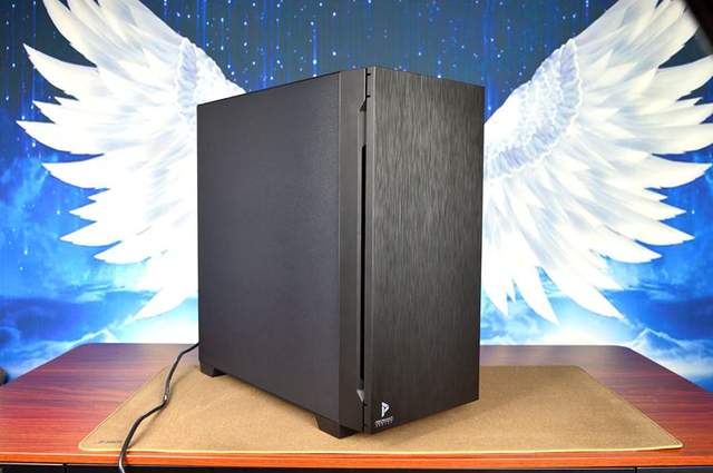 左下角的角标翻译为“工作系列”,这款静音机箱避免了光污染,确实很适合长时间工作使用。风道是在前面板的侧方,开口很大,有倒角,便于气流通行,外观看起来也不单调。