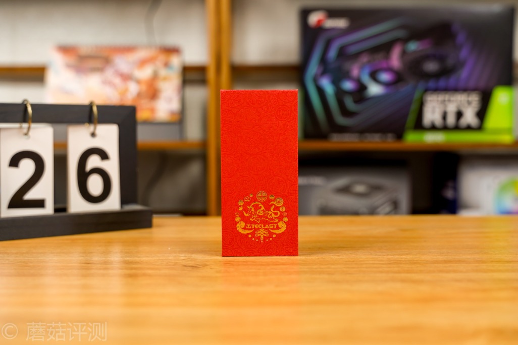 ▼纸盒的底部祥云、生肖、中国结的元素,中间是台电的LOGO。