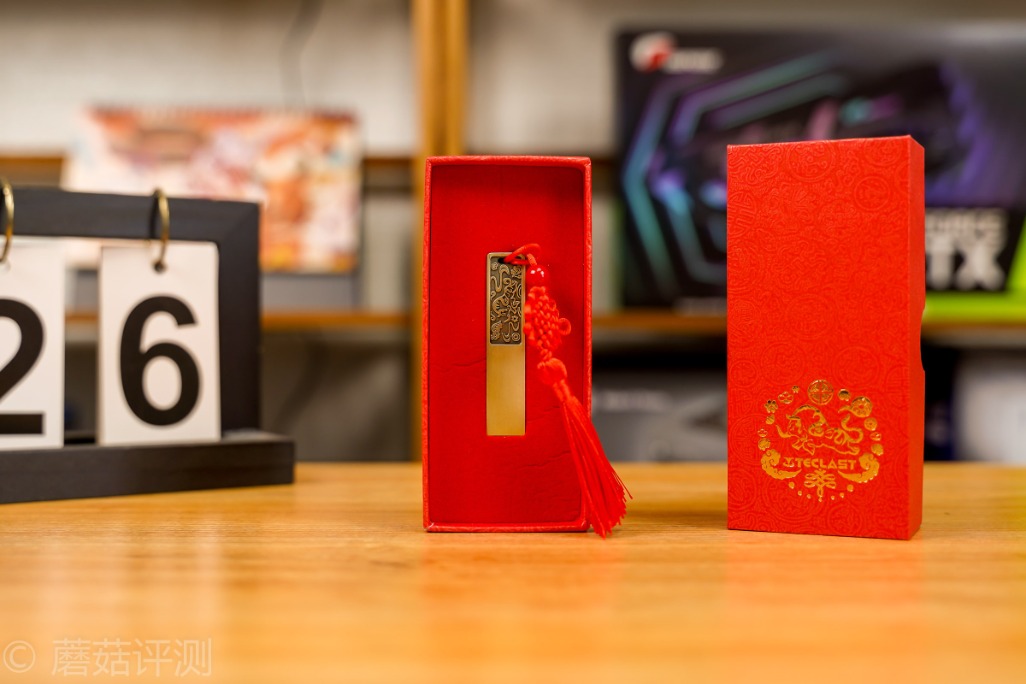 台电的传承系列的生肖U盘,蘑菇的这个印象特别深刻。金属一体式的外观设计,手感和质感都非常棒,并且这个表面还有各种生肖的凹印,U盘顶部还绑了一个大红色的中国结,中国味非常浓厚。
