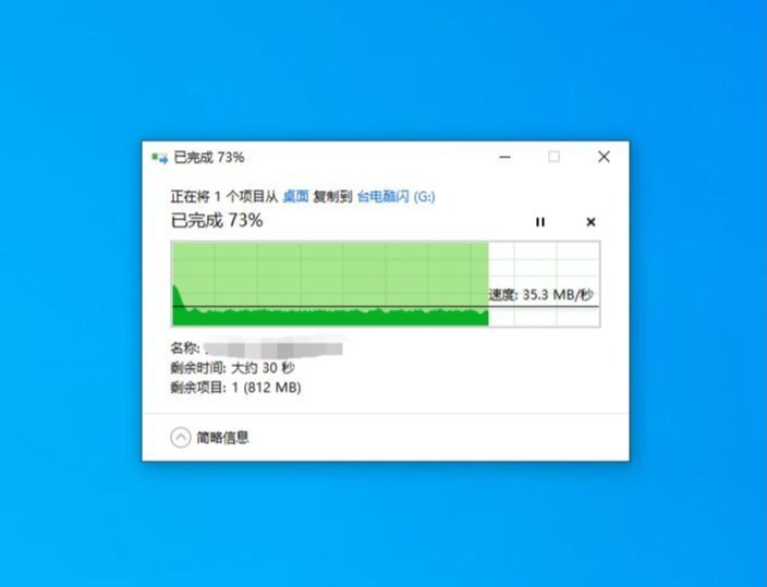 ▼写入速度表现还行,速度稳定在35MB/s左右。