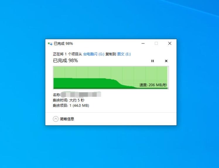 ▼写入速度比较有意思,直接从缓存写了,速度最后稳定在206MB/s。