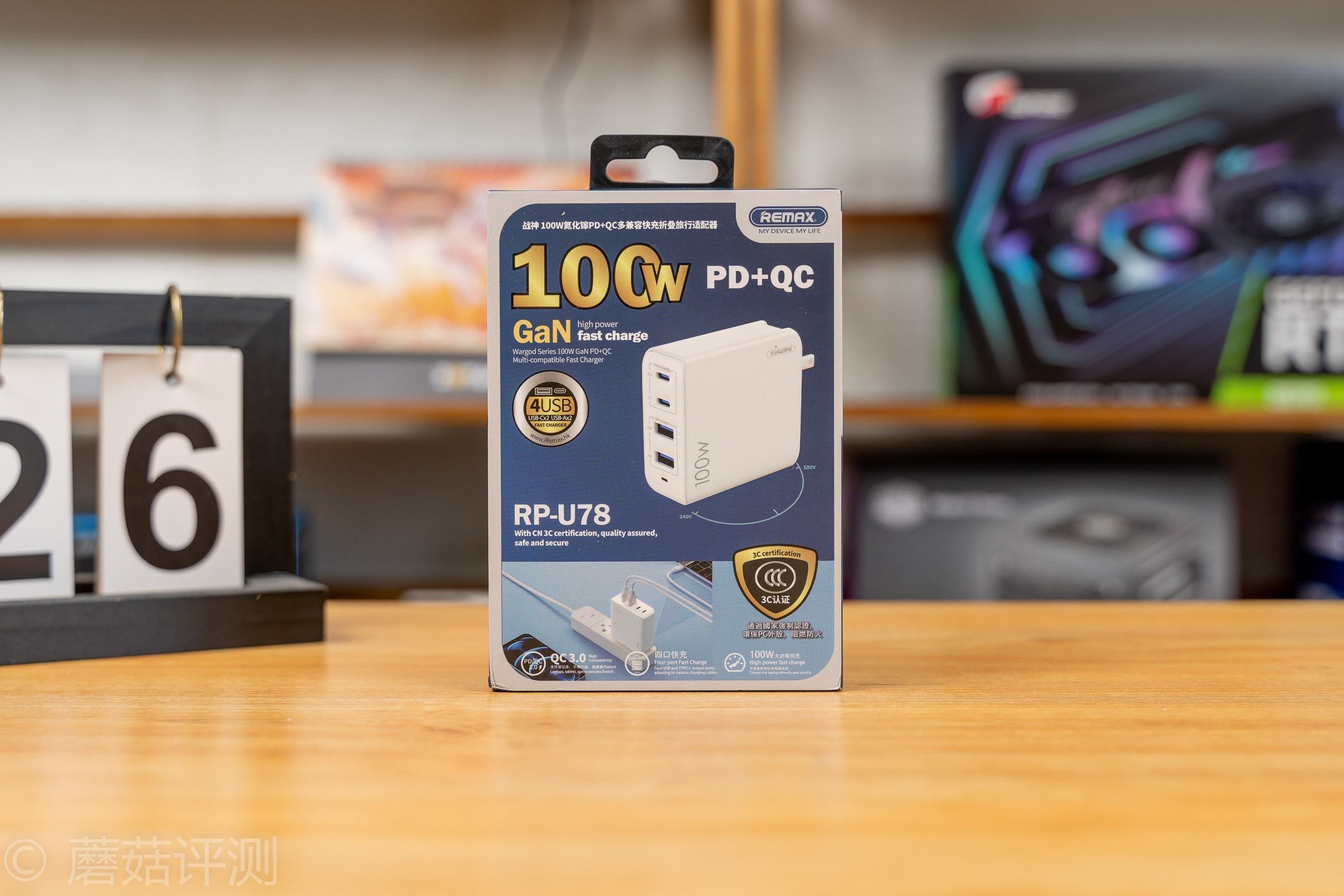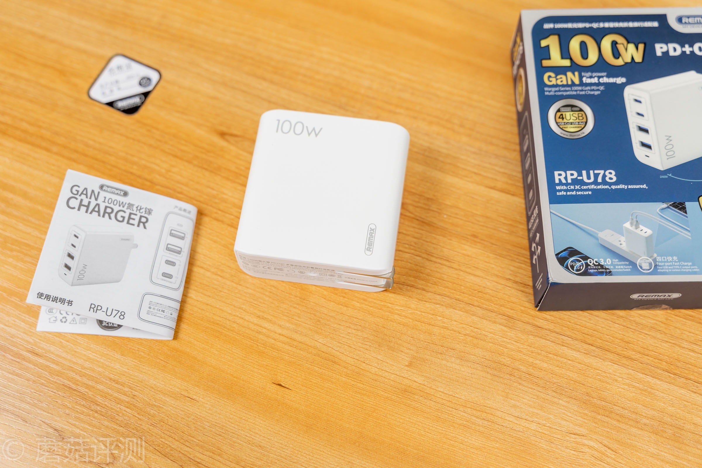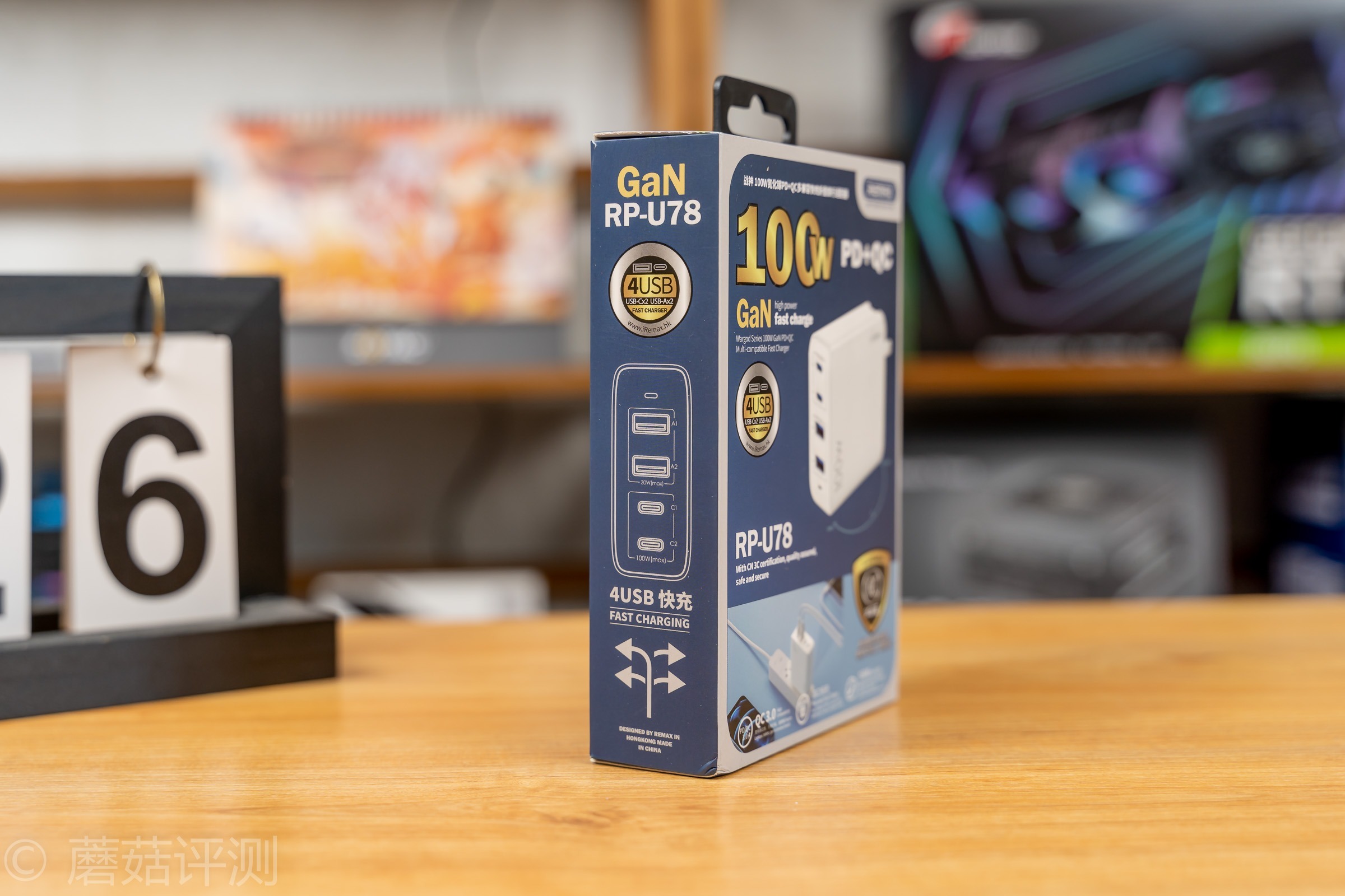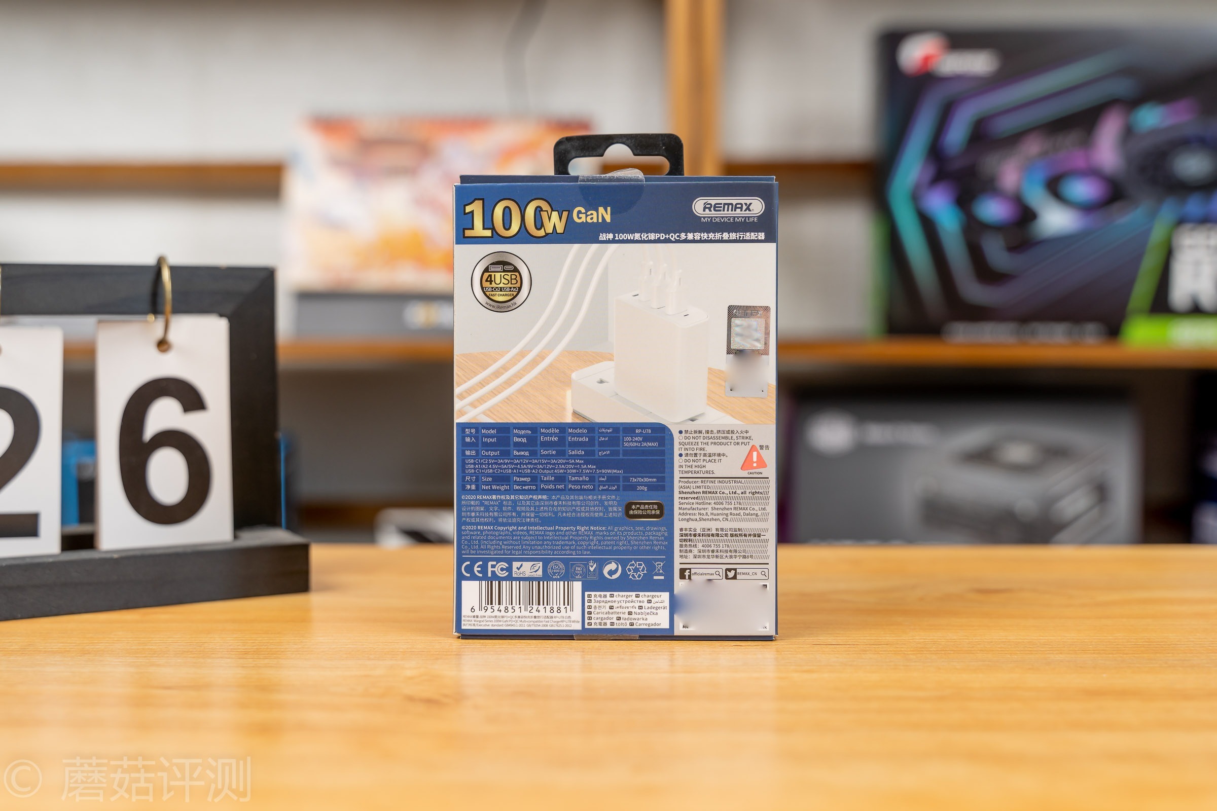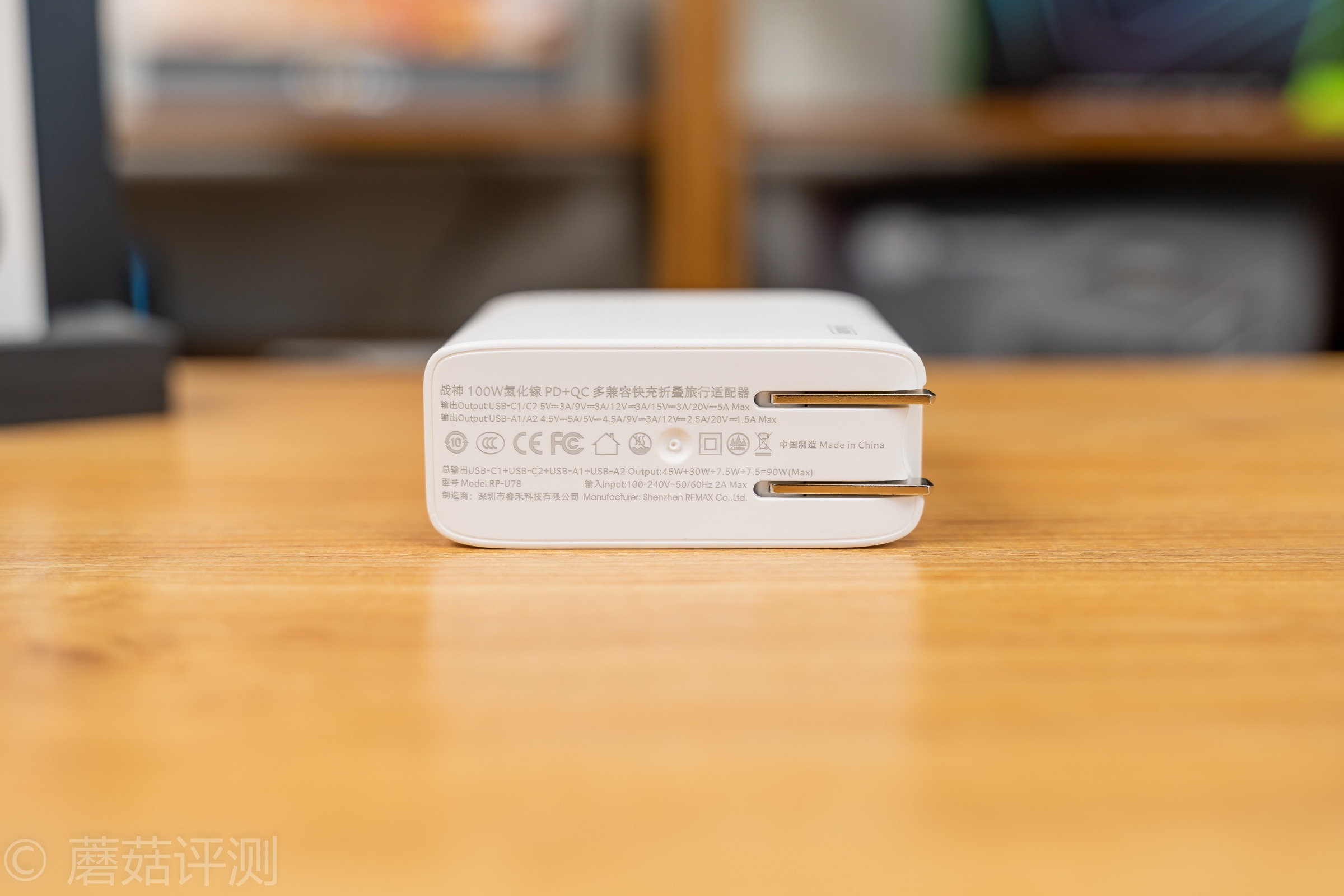最后蘑菇推荐了睿量的这款100W的氮化镓充电器,双C、双A,最大功率100W,基本可以满足朋友出差使用了。