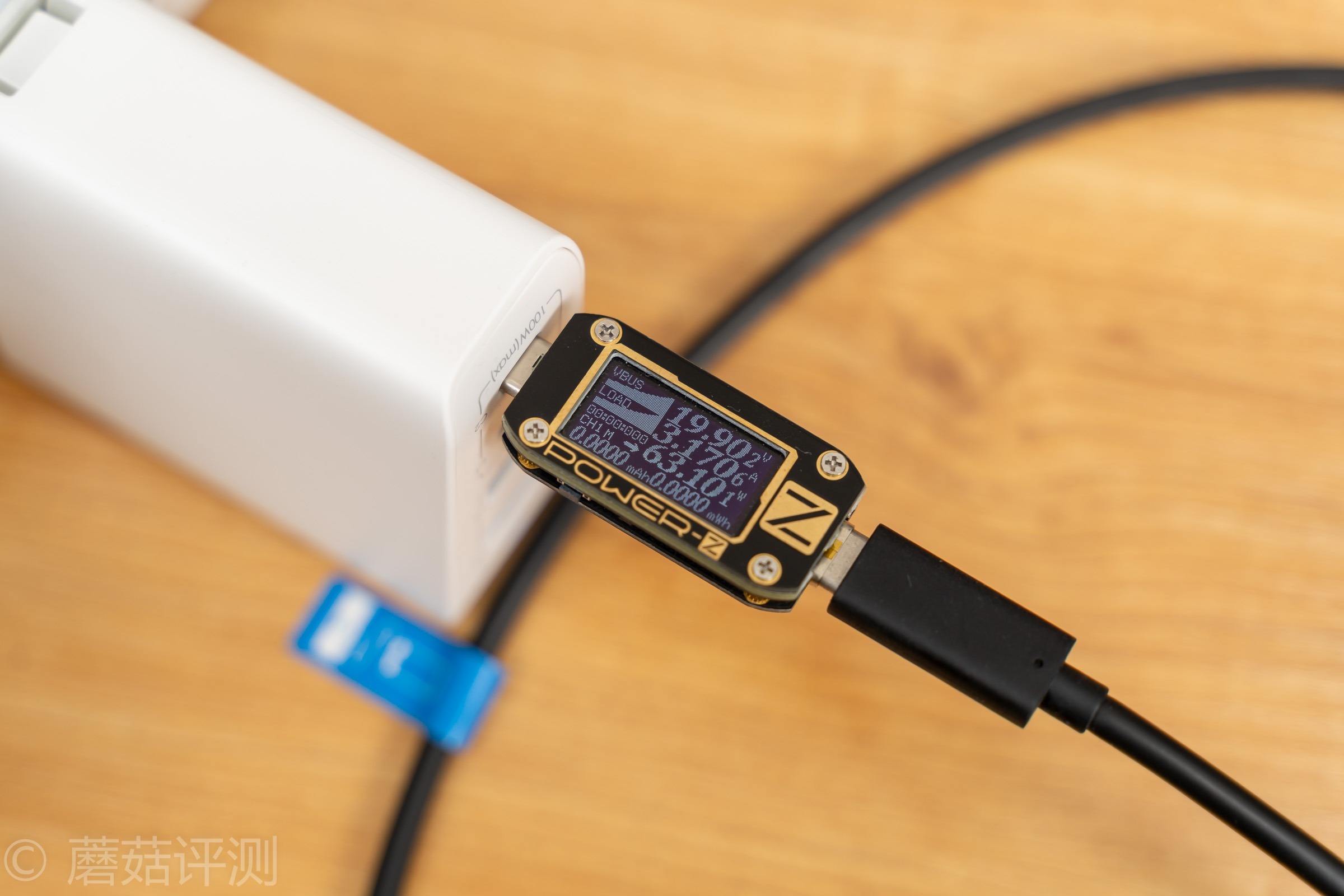 另外,这个充电头的散热做的不错,65W稳定输出的情况,充电头表面只是微热,说明其内部散热做的挺好的,比蘑菇之前的65W的充电头的温度表现要好多了。