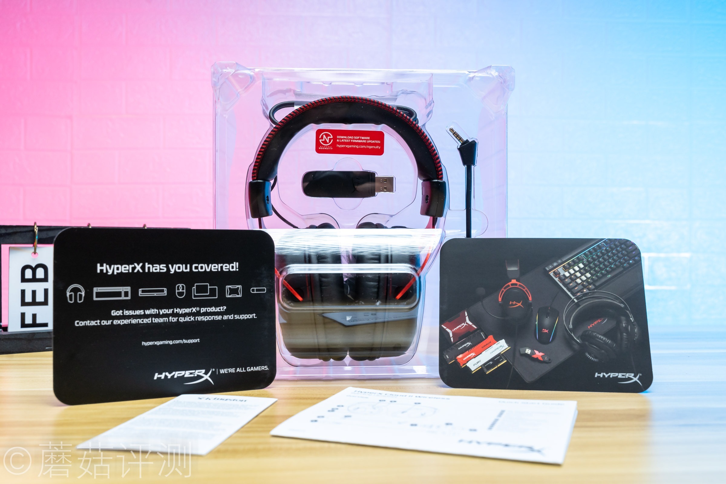 ▼耳机包装内,除了耳机、说明书之外,还有两个卡纸,主要介绍HyperX的家族产品。