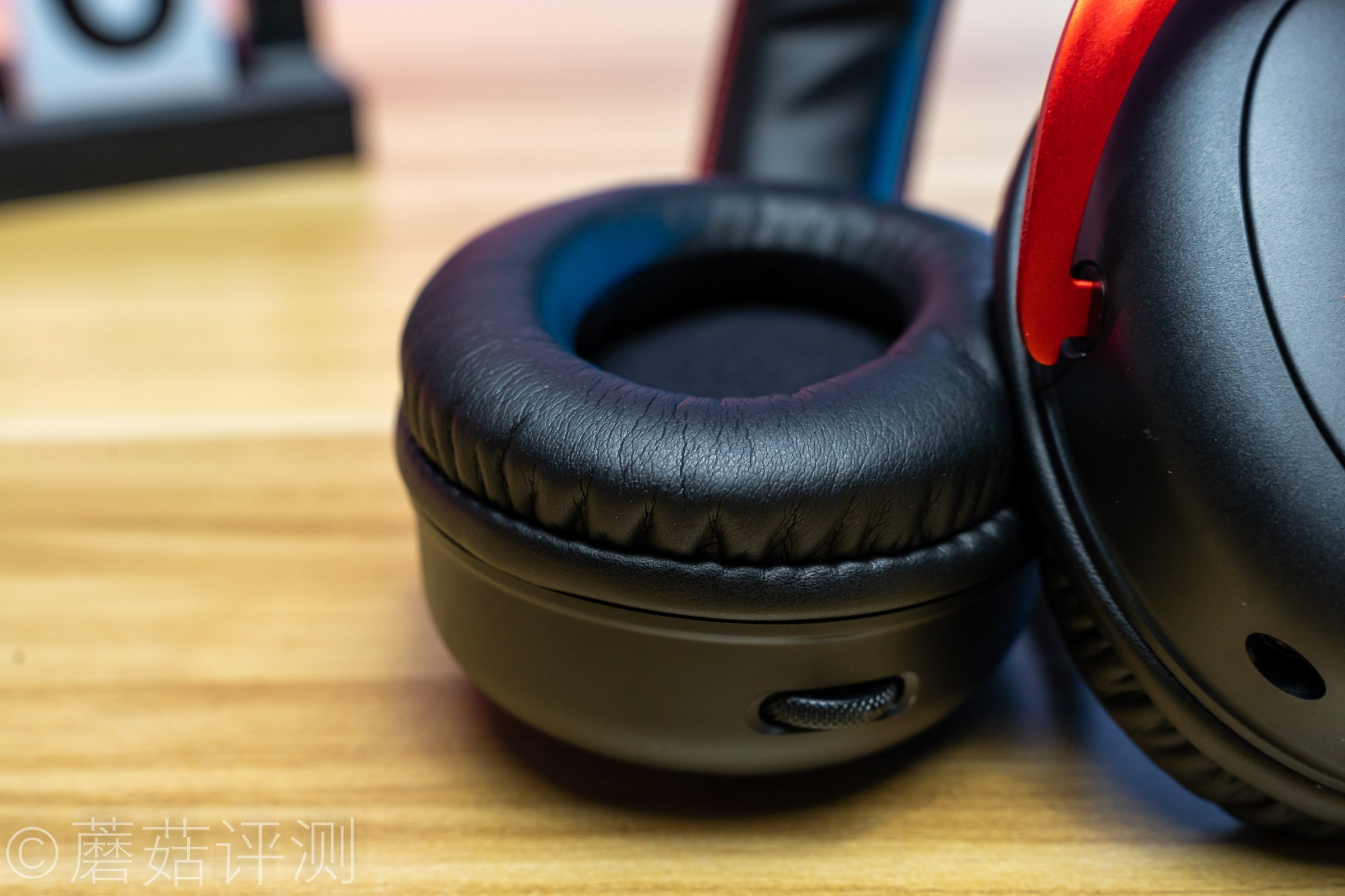 ▼耳机左右耳罩同样也是非常柔软的,表面是皮质的,触感细腻。