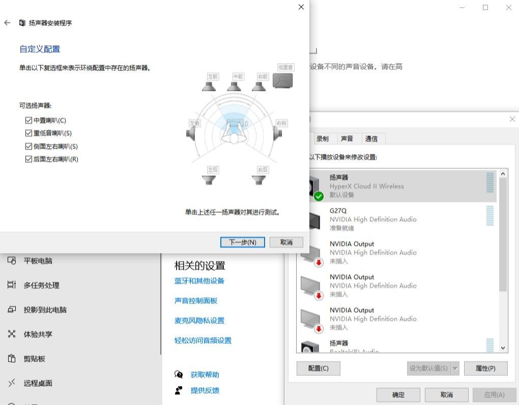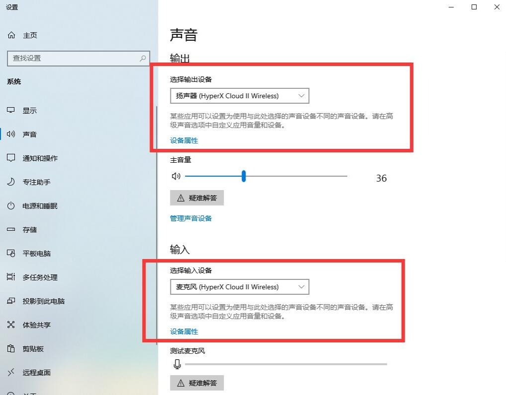 ▼将耳机接收器插到电脑上,将声音输入、输出都选为HyperX Cloud Ⅱ Wireless,这样耳机就能正常使用了。