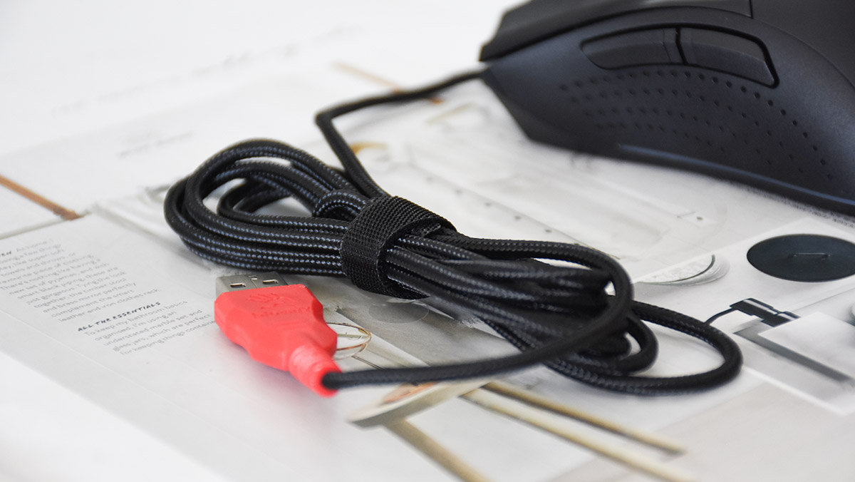 血手幽灵A90 Max采用的是质地柔软的编织线材,相比一般的皮质线材耐久度更高,并且柔软的质地也不会影响到鼠标的移动。长度大约为1.8米左右,基本能够满足日常的使用环境。