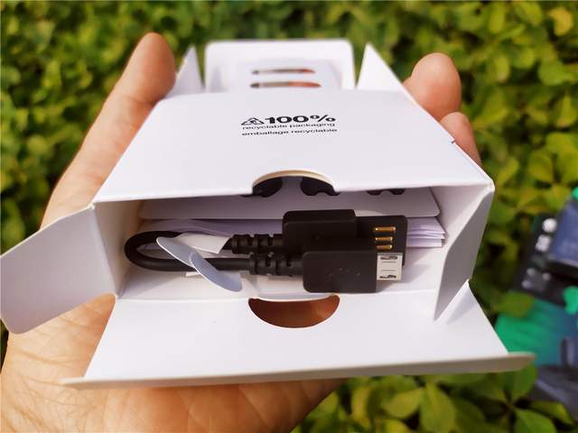 配件齐全,且包装很环保。另附了L/S尺寸硅胶耳帽各一副,满足个性化使用需求。搭配了一根Micro USB头充电线。