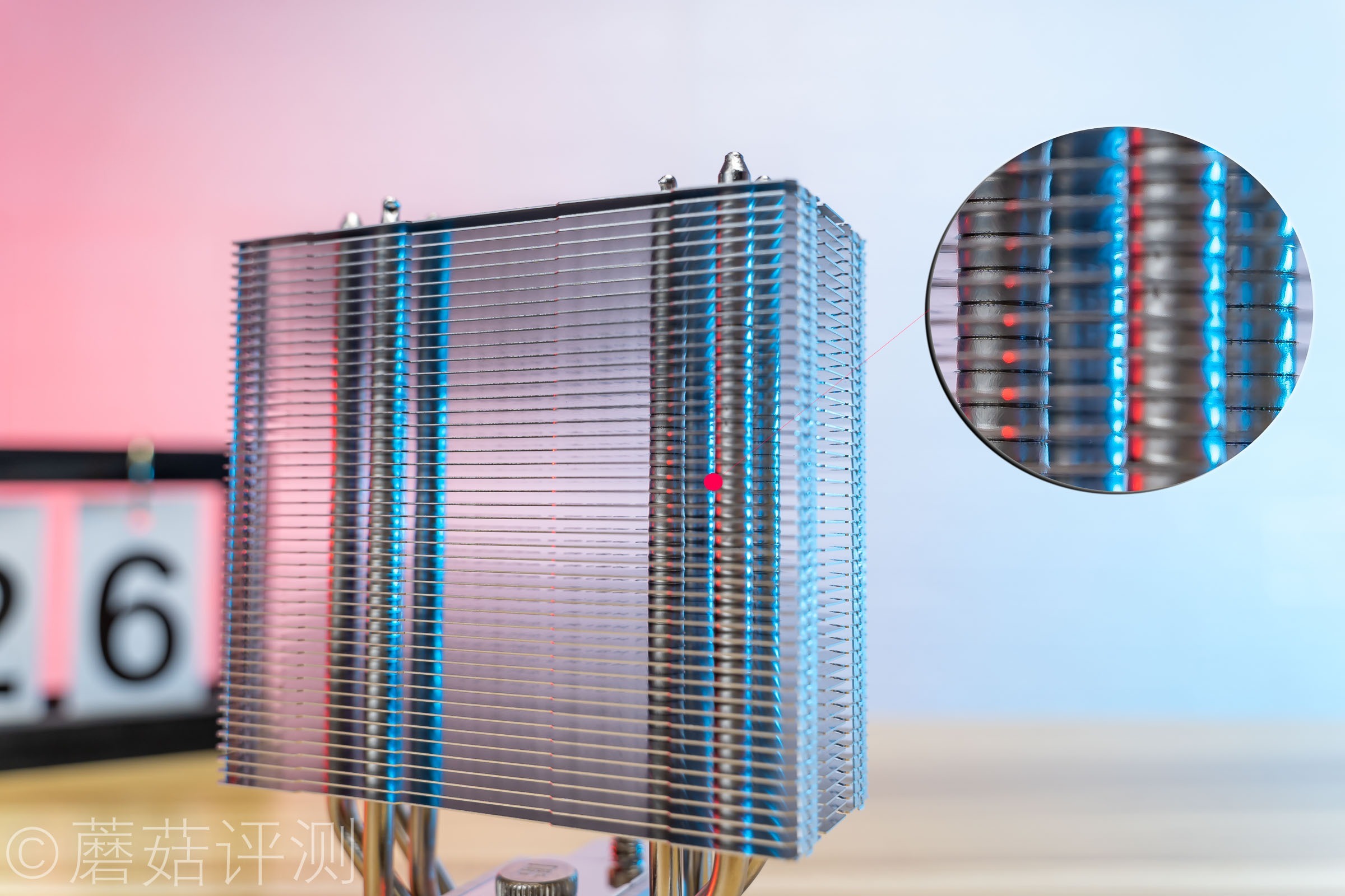▼放大看看散热鳍片,熟悉的穿Fin工艺,做工很精致,几乎看不见缝隙,一致性很棒。