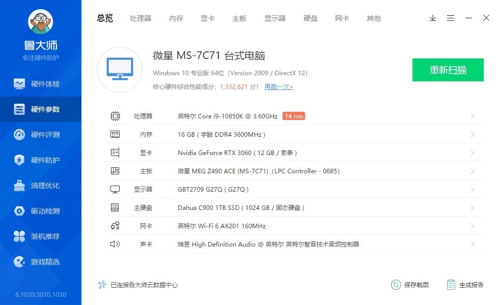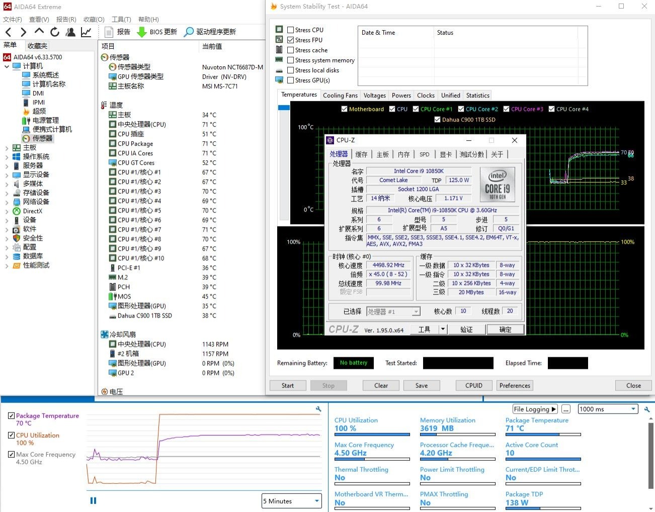 ▼整机配置,处理器是10850K,显卡是索泰的RTX3060天启OC,主板是微星的Z490 ACE。对了,10850K已经提前锁了全核4.5GHz,可以完美的测试利民AS120这款散热器的实力。