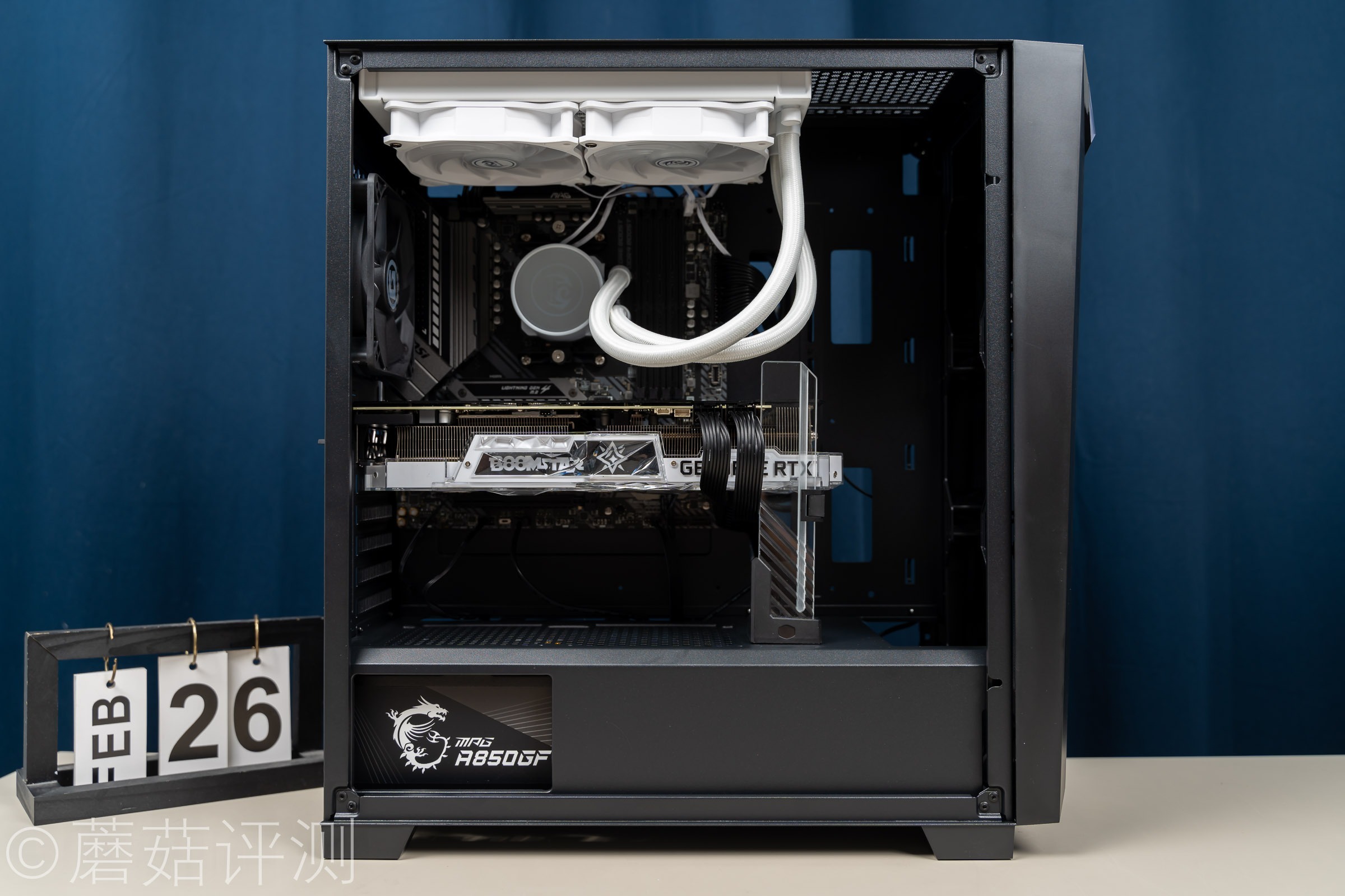 ▼主板固定很简单,水冷排直接安装到机箱上部,空间很充足。
