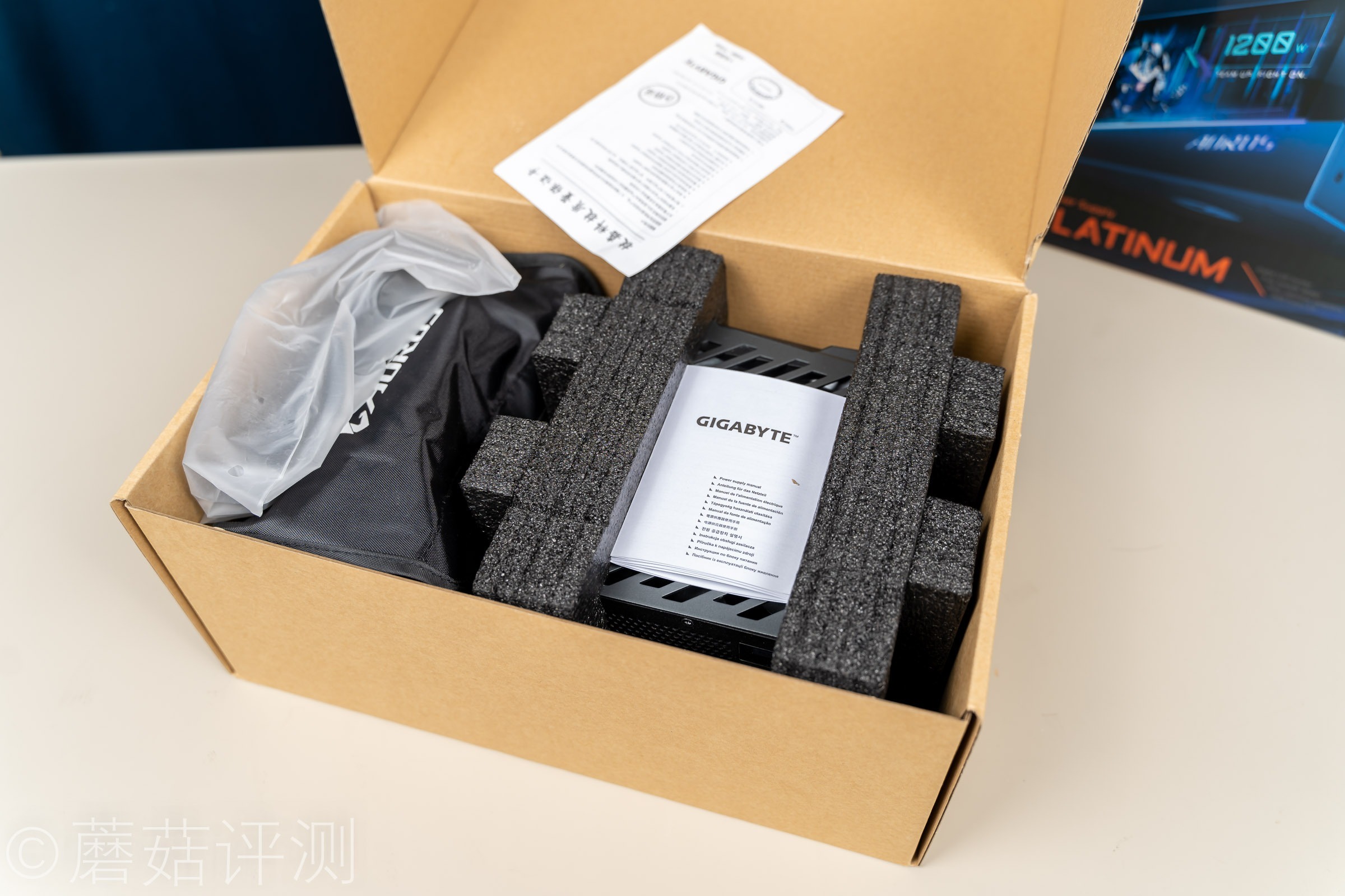 二、技嘉铂金雕1200W白金牌全模组电源 开箱