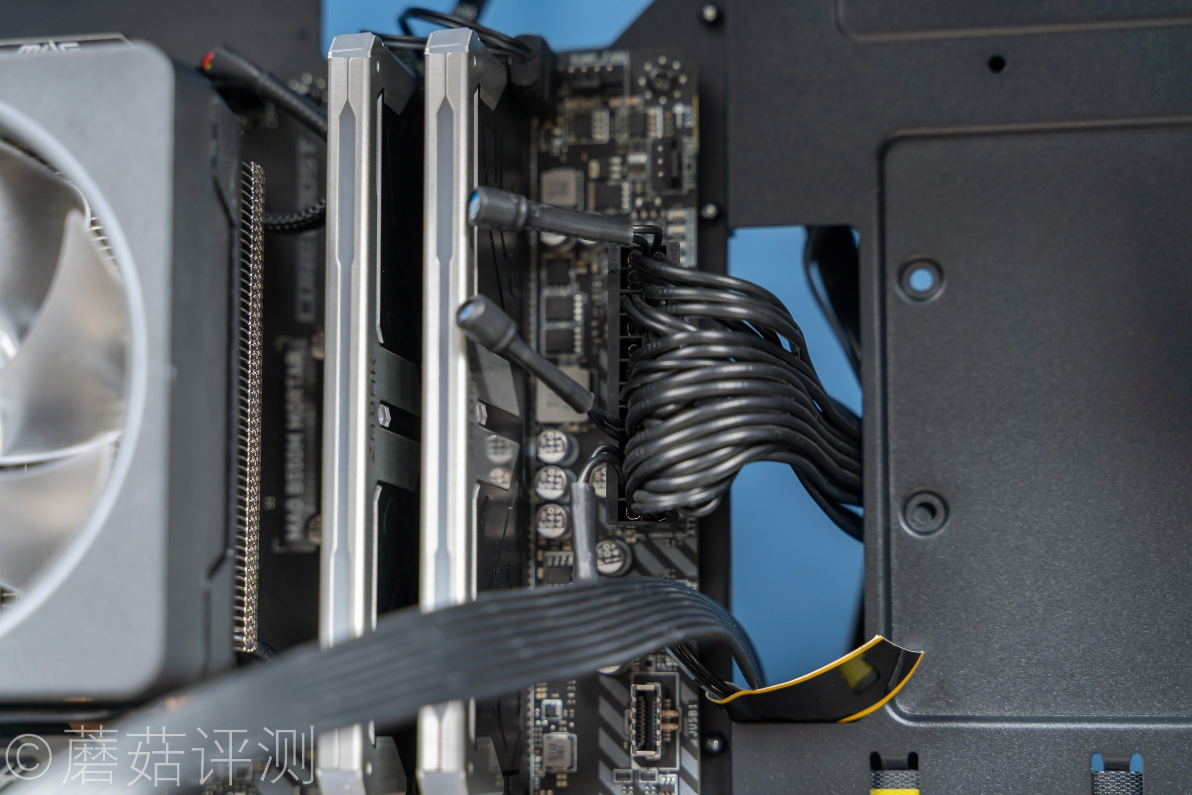 ▼主板供电的线端电容正常看没啥问题,装机插上供电之后,感觉这个电容就有点乱了,需要用相应的扎带理一下。