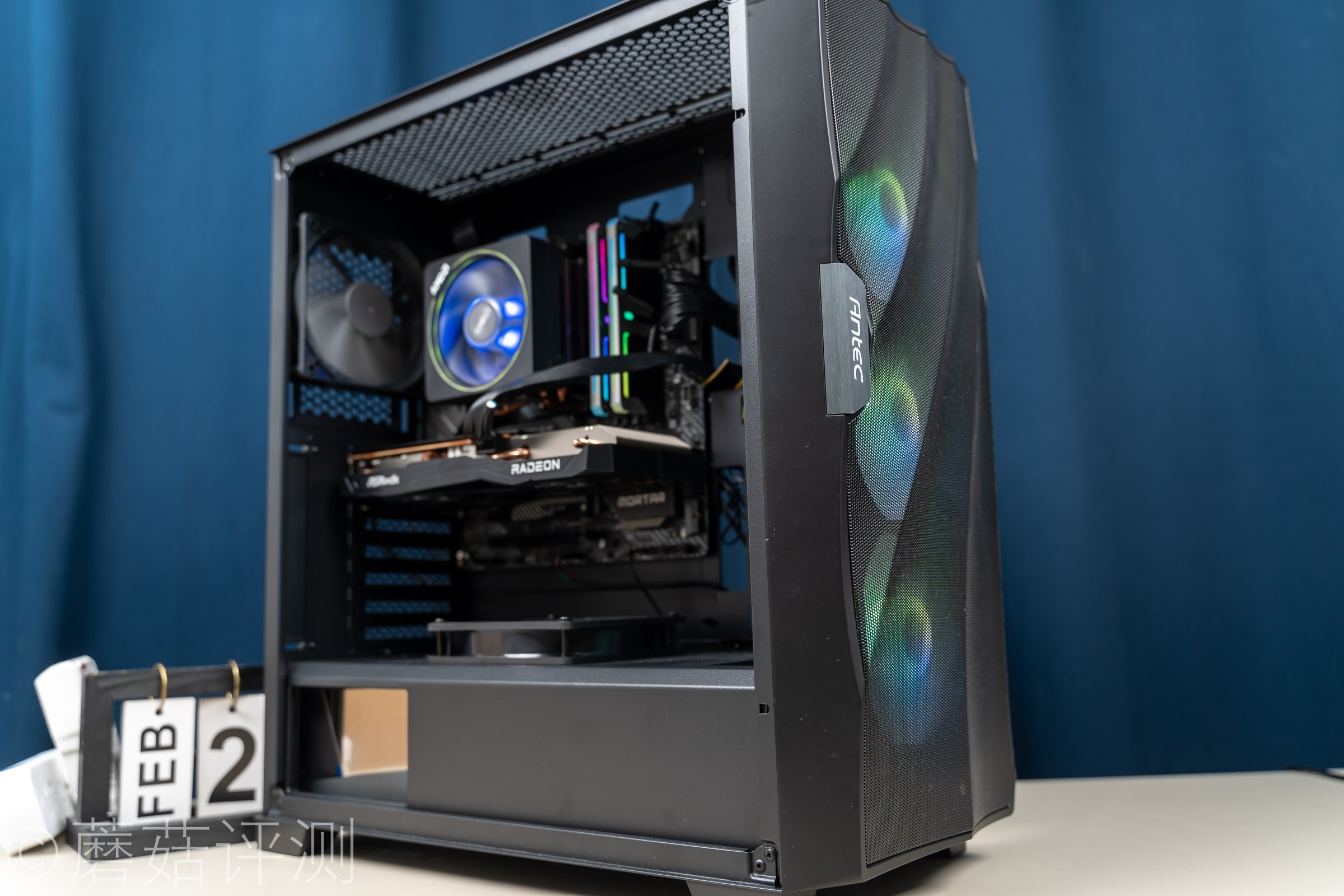 ▼机箱是安钛克的DF700 Flux,这款机箱的颜值非常漂亮,前部有大面积的金属冲孔网,进风面积很大。机箱的整体风道,前进,后上出,非常的简单、高效。