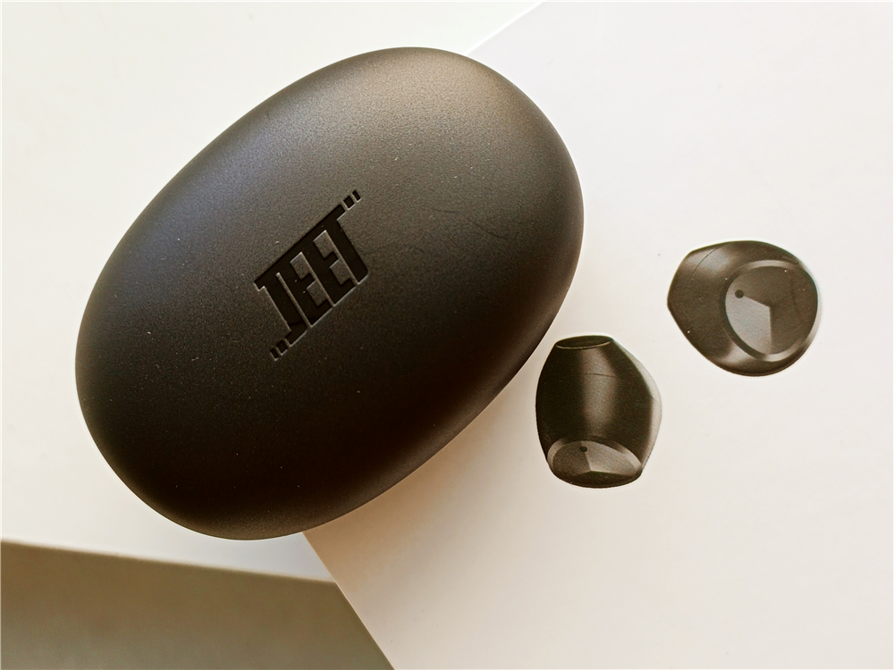 JEET的LOGO印于仓盒正中,很是醒目,同时充满设计感显得仓盒小巧精致。稍美中不足的是,仓盒表层的哑光铝合金材质,容易出现划痕,平时使用要注意避免跟钥匙等金属硬物放置一处。