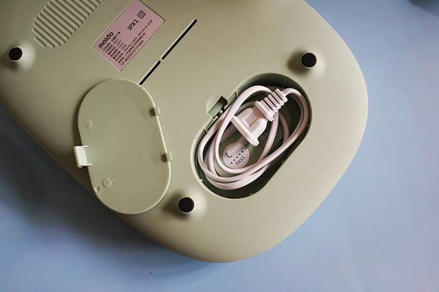 为了提高便携性,在烘干盒的底部还设计有一个专门收纳电源线的仓位,平时用盖子盖上,看上去十分美观,使用起来也很方便。