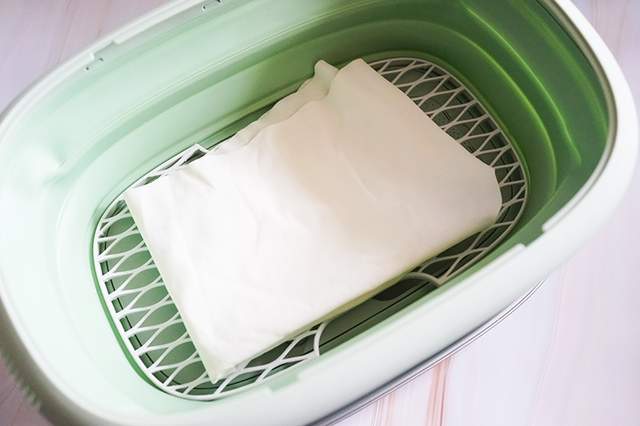 下面将网状隔板垫上,下层放上刚洗好的内裤,上层放上内衣,实际来烘干试试效果。