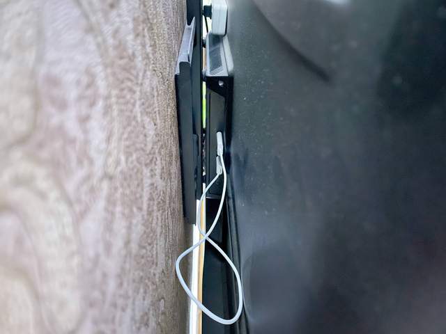 我在自己家的老房子先做了测试,把EZCast 易投熊T1的接收器像下图这样插在电视上就可以了,也没什么需要注意的,特别简单!