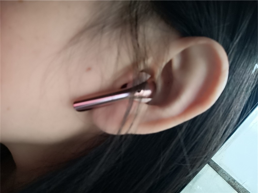 小如U盘的修长身形,使用时几乎无感,并且就算是长时间佩戴也不容易产生疲劳感。半入耳一体式设计的好处是取出即可使用,佩戴舒适感佳,完全没有入耳式设计带来的对耳道的侵入感、异物感。也不是没有缺点,可能也是我耳廓比较大的缘故,佩戴牢固度不够高,剧烈运动时不建议佩戴,有脱落的可能,平时行走以及做轻缓运动时佩戴还是完全没问题的。