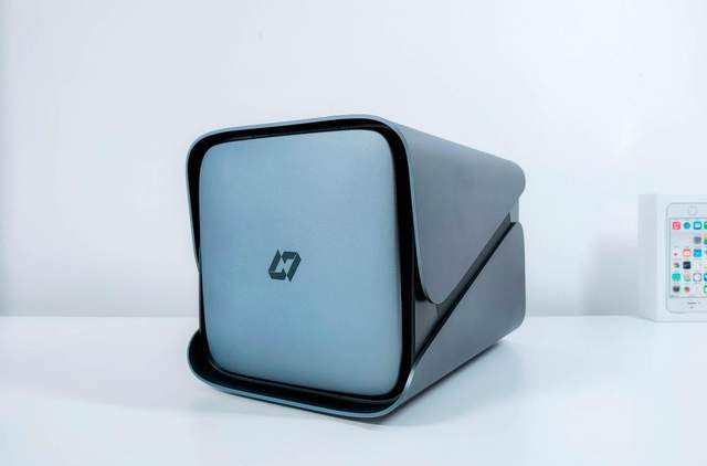 从包装渲染图上已经对极空间新Z4有了第一印象,确实不同于市面一般NAS的黑白盒子造型,新Z4采用了多曲面拼接工艺,Z字中心对称设计元素配合铝合金金属机身,说是NAS当中颜值最能打的产品一点不为过。毕竟能拿下红点设计奖的NAS产品凤毛麟角。