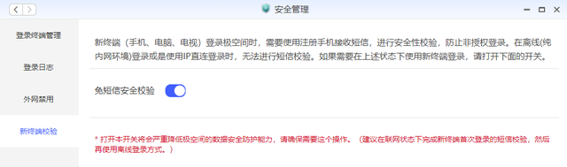 在安全管理当中,我们可以看到历史所有登录设备以及登录记录,甚至可以一键关闭外网访问以及新终端短信验证。